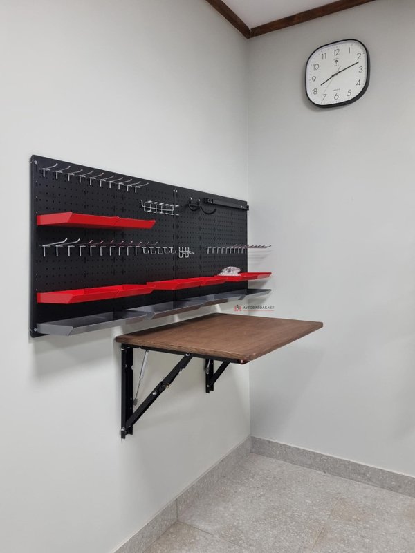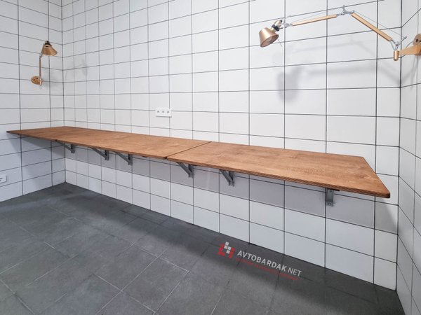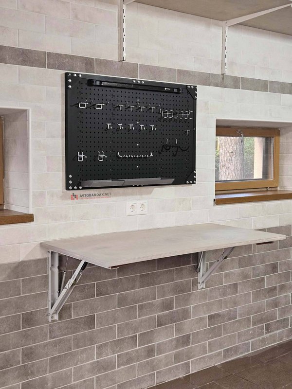 На выбор кронштейны откидного стола глубиной 400 или 600 мм и столешница от 600х400 мм до 1400х600 мм.