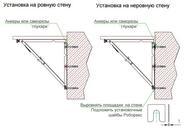 Каждый кронштейн крепится к стене с помощью 3-х анкеров (или саморезов) М8.