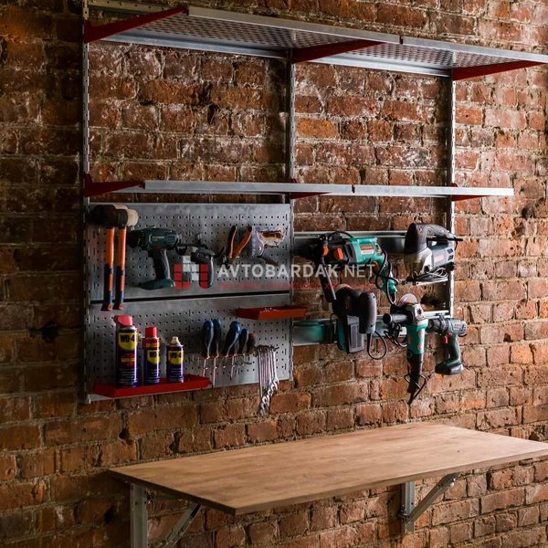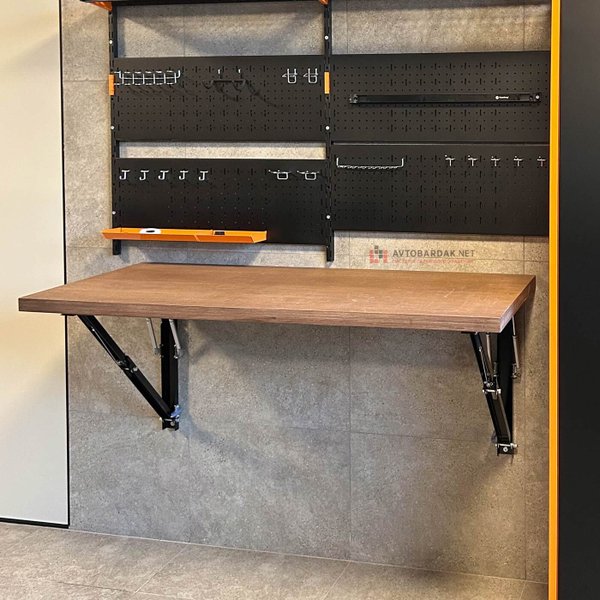 Усиленный откидной верстак с деревянной столешницей.