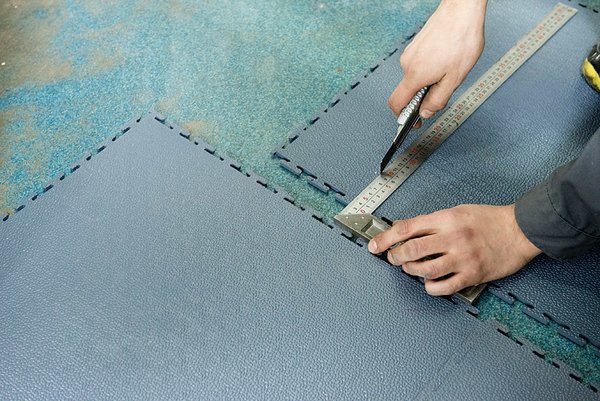 Обратите внимание, что в углу пандус необходимо обрезать электролобзиком или ножом.