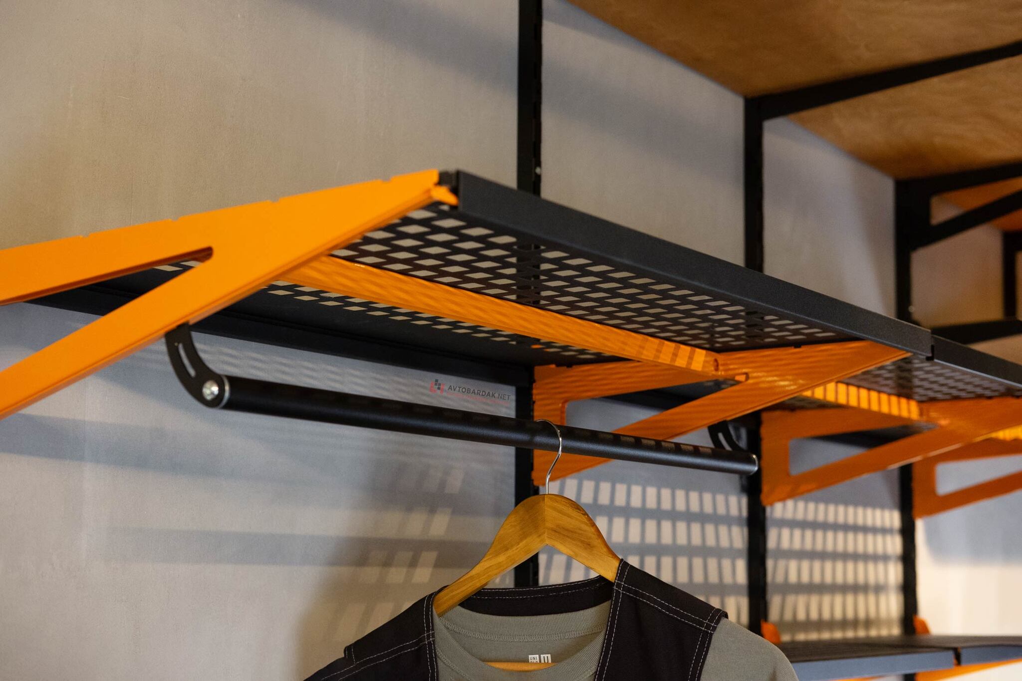 Если вам необходимо хранить большой вес и установить на эту же полку перекладину для одежды, вам нужно использовать усиленный кронштейн.