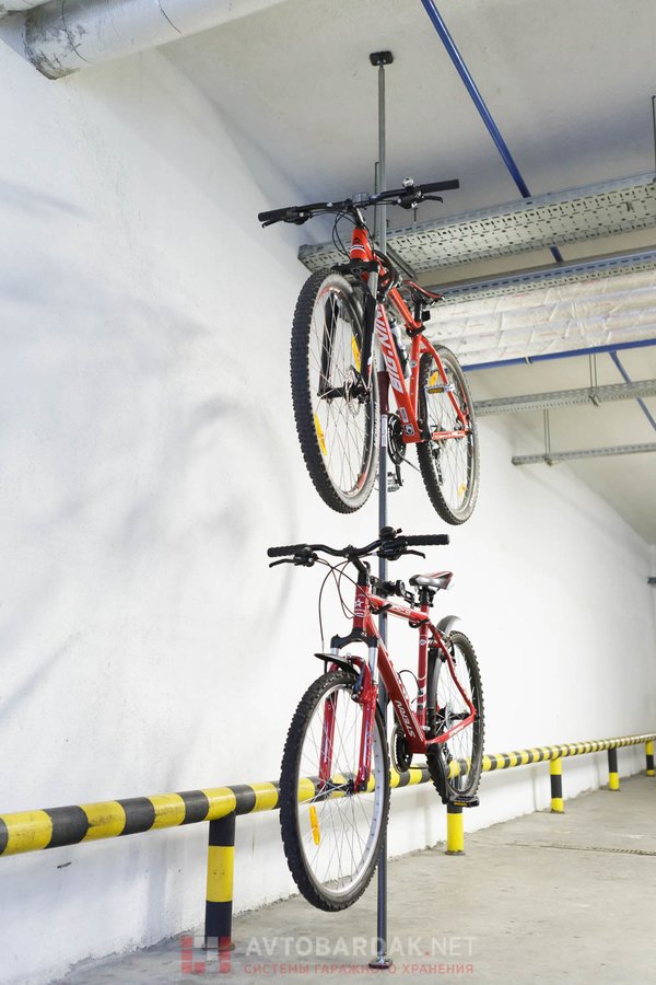 Регулируемый угол наклона подвеса позволяет хранить горизонтально велосипеды со скошенными рамами.