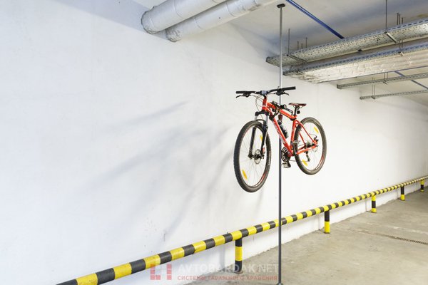 Преимущество данного подвеска на телескопической распорке в том, что не нужно сверлить стену для подвеса велосипедов.
