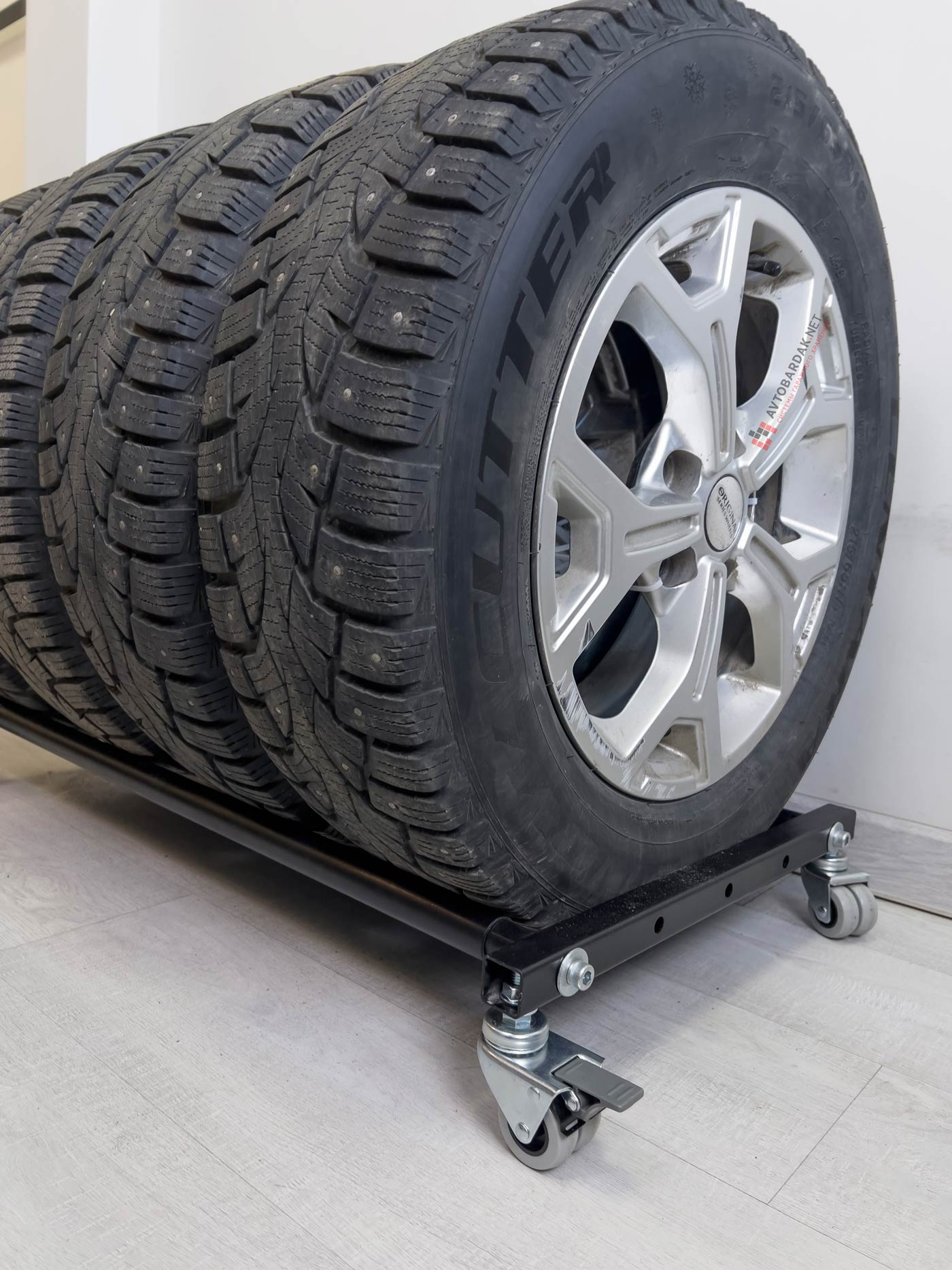Данная полка для колес, это полка для колес, которую мы используем в наших напольных стеллажах. В нижней части полки мы сделали отверстия под М12 ножки и М12 штыри подкатных колесиков. Ножки и колесики приподнимают полку, чтобы нижняя часть шины не касалась пола.