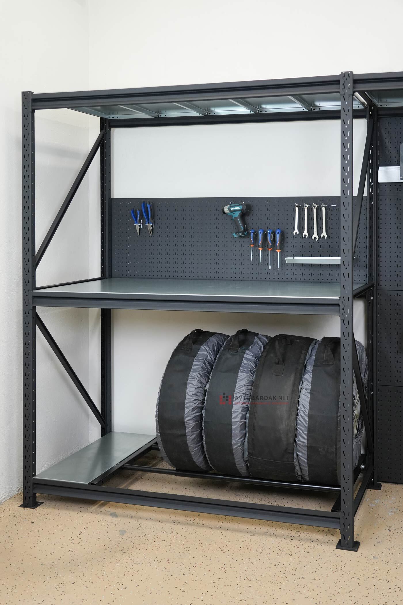 Подробное описание полки для колес в напольном стеллаже по ссылке. По этой ссылке вы найдете больше фотографий полки для колес в напольном стеллаже.