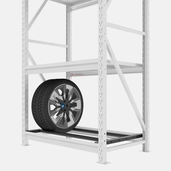 Горизонтальные балки не входят в комплектацию, их необходимо заказывать отдельно. Для каждой полки для колес необходимы 2 горизонтальные балки.