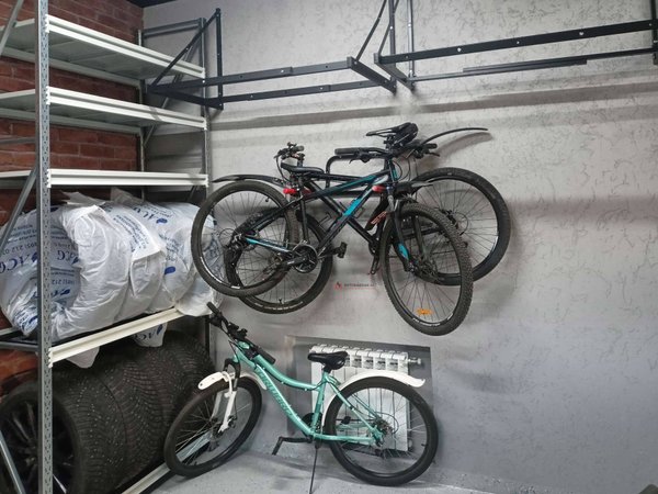 Трубы крепятся к опорам и телескопически входят одна в другую. Таким образом длина полки для колес варьируется от 900 до 1500 мм.