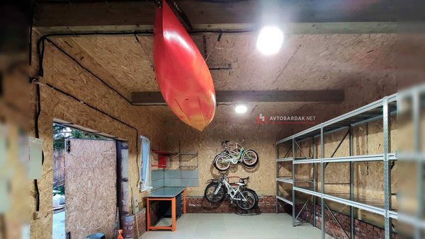 Обратите внимание на подвес для байдарки на потолке. Более подробно про него по ссылке.