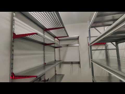 По левой стороне напольный стеллаж глубиной 700 мм. Стеллаж из двух разных по высоте секций: 2500 и 2000 мм. Особенность наших стеллажей в том, что можно стыковать секции разной высоты между собой.