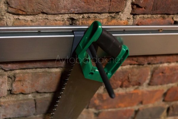 Крюк может просто крепиться к стене с помощью саморезов или навешиваться на рейлинг. В случае крепления на рейлинг крюк съемный. С одной стороны он надежно фиксируется на рейлинге, с другой его просто снять и перевесить в другое место.