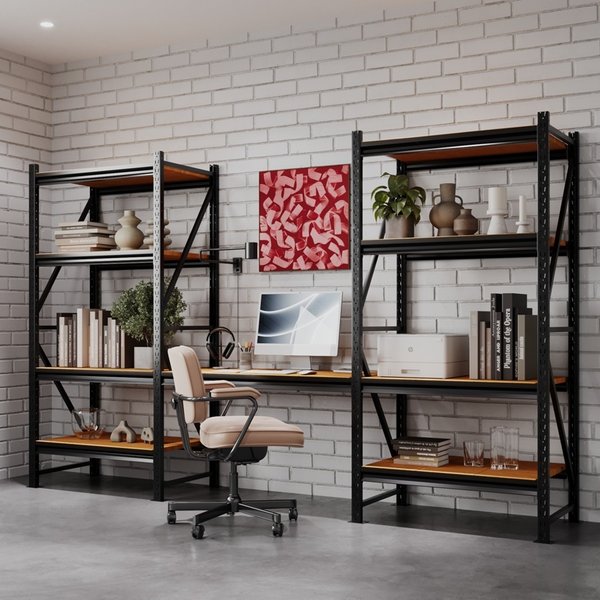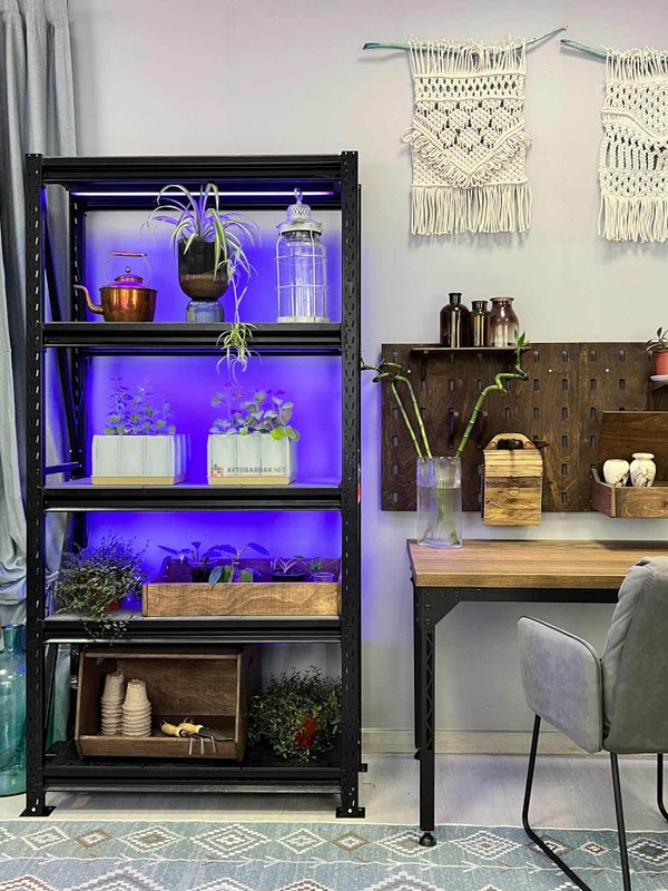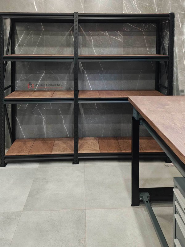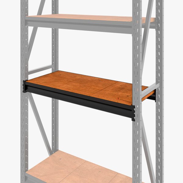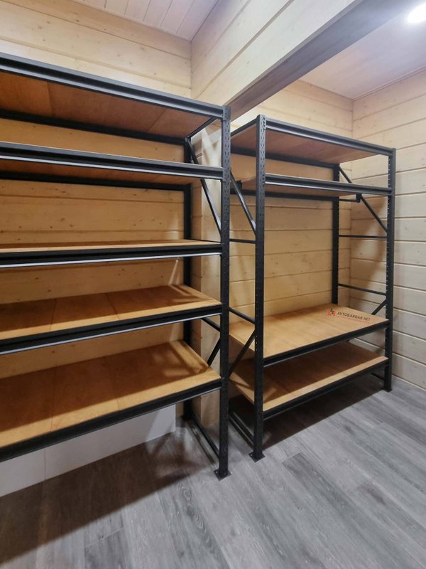 Это комплект, состоящий из двух горизонтальных балок, которые зацепляются за боковые рамы с помощью специальных зацепов и фиксаторов и нескольких деревянных полочных панелей из фанеры, покрытых маслом. Каждая полочная панель длиной 300 мм с несколькими вариантами глубины от (400 мм до 1000 мм), выбранной в опциях в карточке товара.