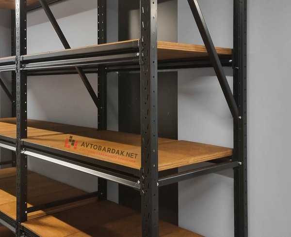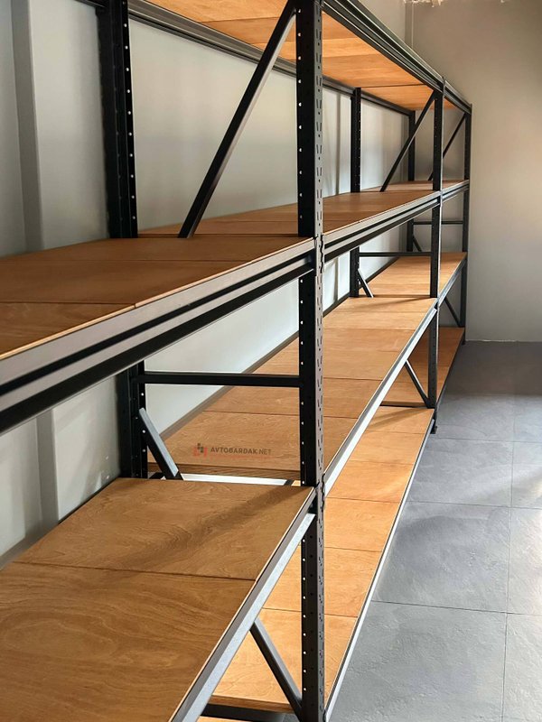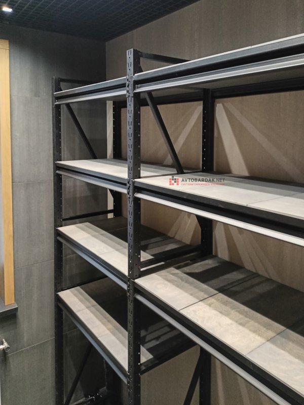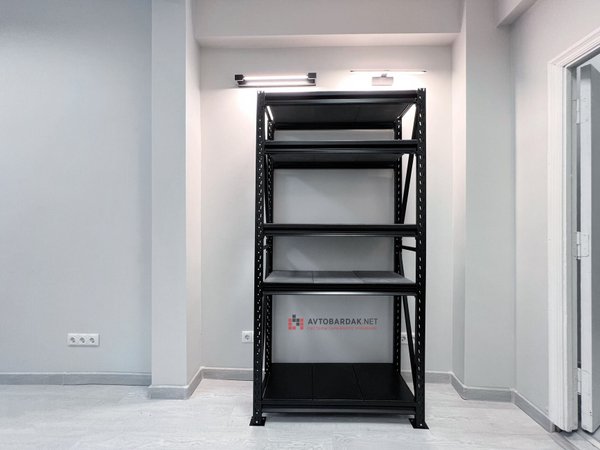 Нагрузка. Общая допустимая нагрузка на стеллаж (на одну секцию) 3,5 тонны. Соответственно можно посчитать нагрузку на каждый ряд полок, зная количество рядов полок в стеллаже.