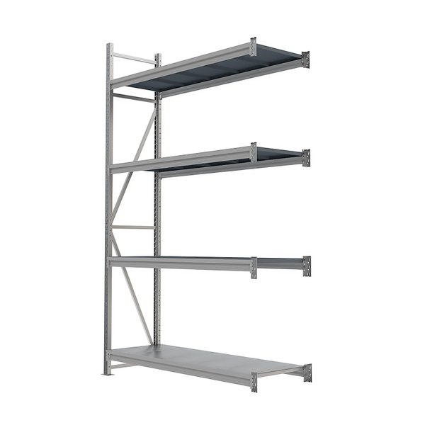 Рама стеллажа – оцинкованная сталь. Горизонтальные балки (на которых лежат полки) сталь, порошковая покраска, цвет серый. Полки на выбор: оцинкованная сталь или сталь с порошковой покраской в серый цвет.