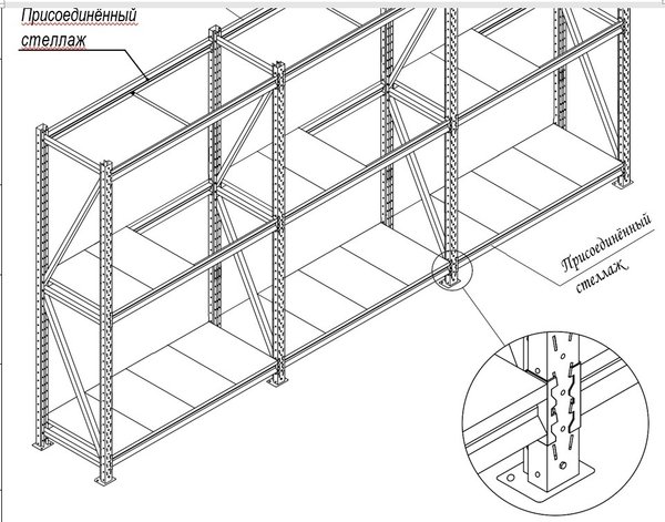 Обращаем внимание, что стыковочная секция не должна быть выше основной секции стеллажа.