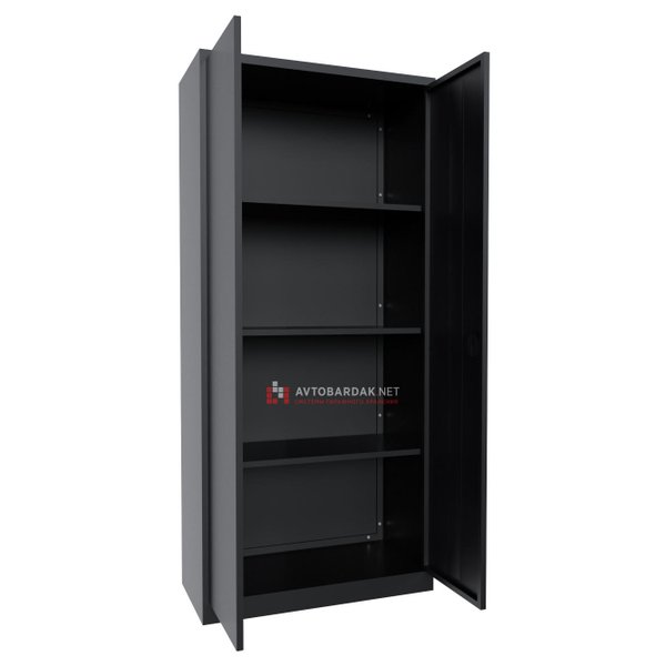 4 полки, регулируемые по высоте. Двухстворчатые двери с ригельным замком.