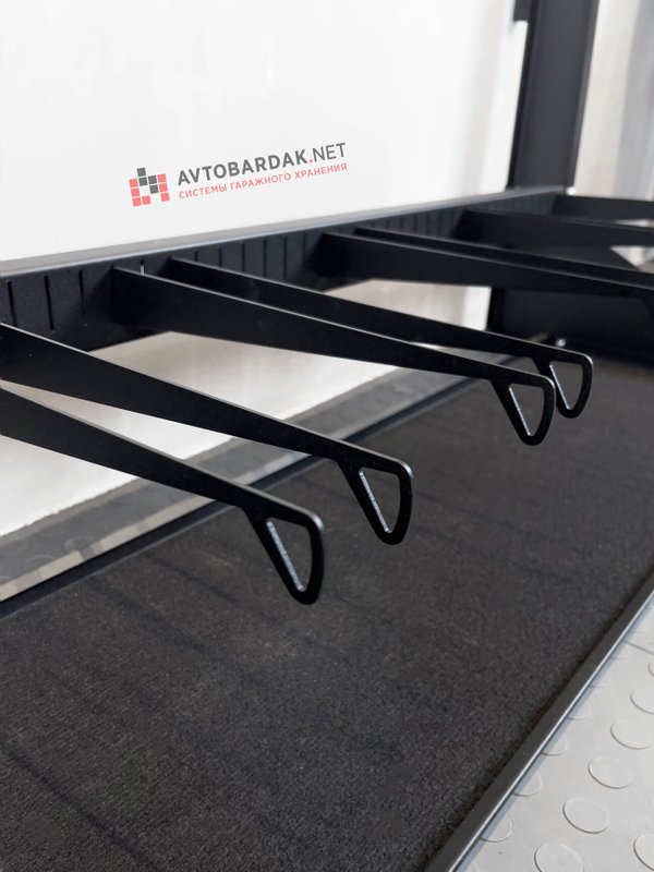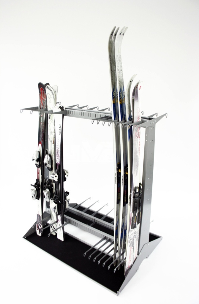 Стойка для хранения сноубордов и лыж. Верхняя и нижняя балка оснащена перфорацией, в которую нужно вставлять делители. С помощью делителей вы сами определяете на каком расстоянии хранить ваш спортинвентарь.