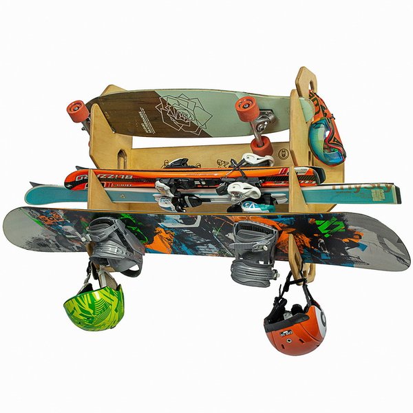 Универсальный настенный кронштейн для хранения 3-х пар лыж или сноубордов или скейтов или другого спортивного инвентаря.