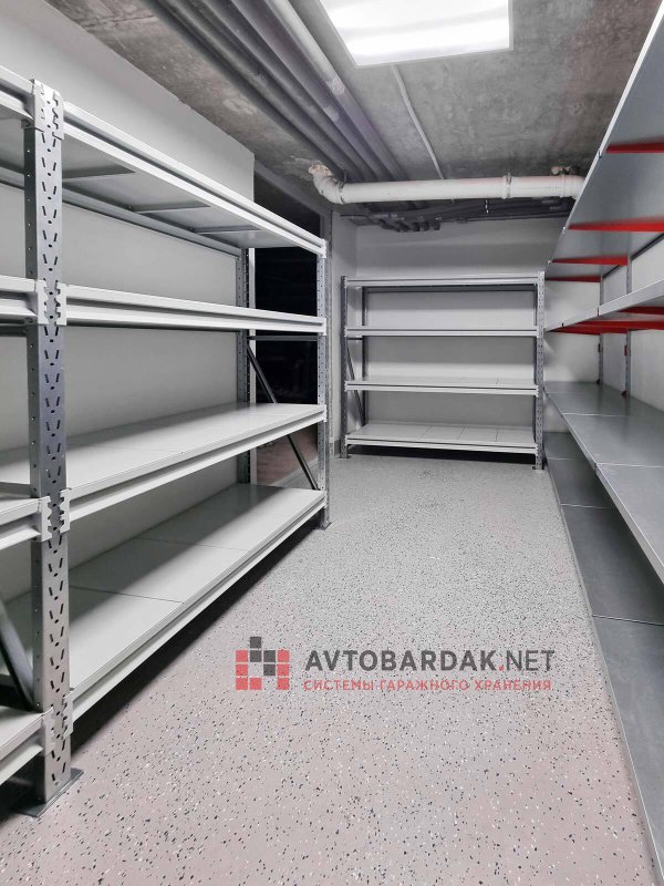 Рама стеллажа – оцинкованная сталь. Горизонтальные балки (на которых лежат полки) сталь, порошковая покраска, цвет серый. Полки на выбор: оцинкованная сталь или сталь с порошковой покраской в серый цвет.