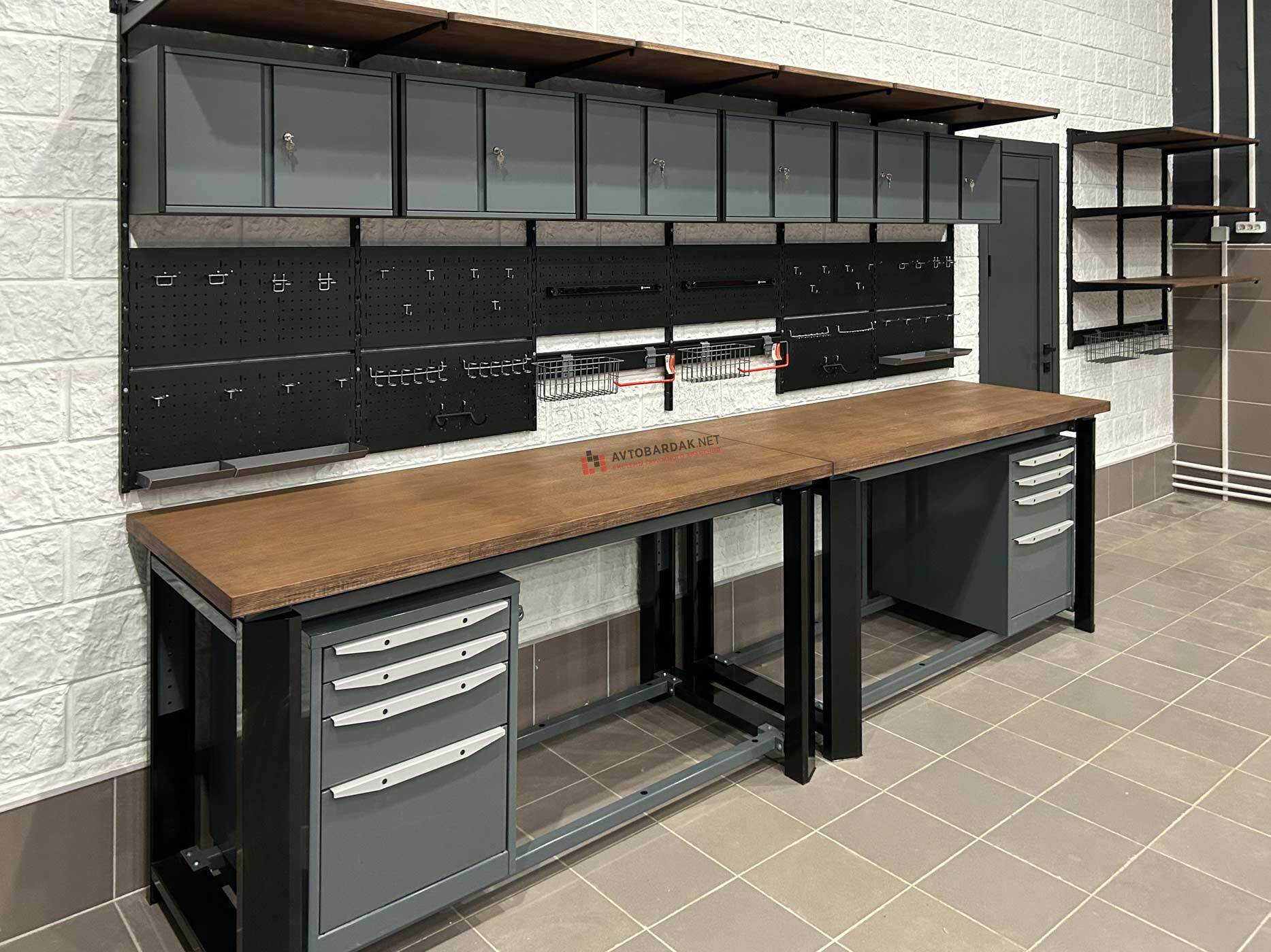 В слайдере множество примеров обустройства мастерских, гаражей и кладовок верстаками с деревянными столешницами.