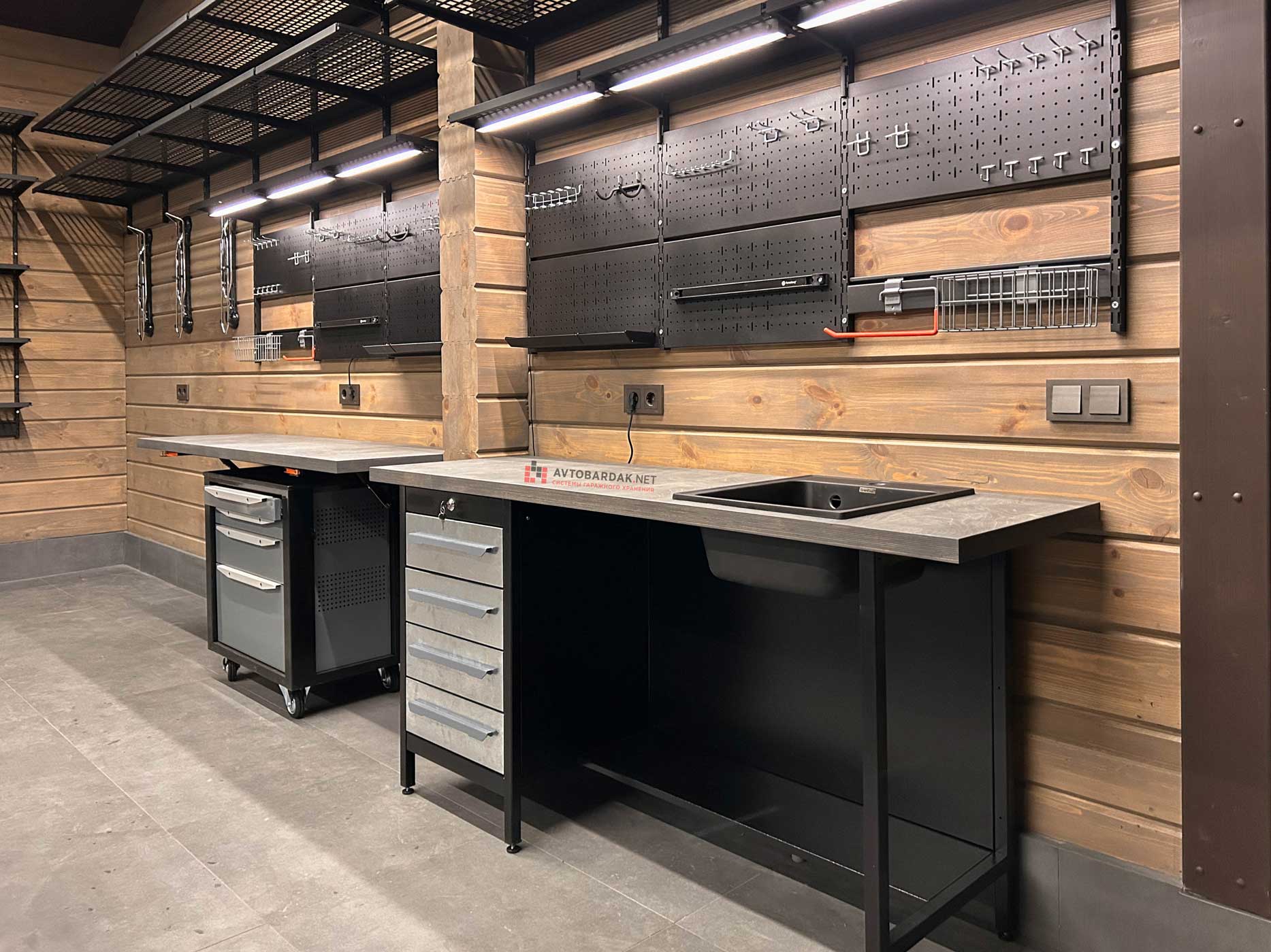 Наши проектировщики вместе с вами подберут товары и спланируют вашу идеальную мастерскую в гараже: стальные и деревянные верстаки, полки, стеллажи, перфорированные панели, ящики и шкафы для хранения инструментов. У нас есть все для обустройства мастерской.