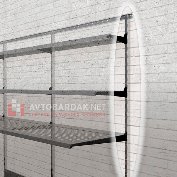 Мы рекомендуем крепить вертикальные направляющие к стене саморезами. В этом случае грузоподъемность всей системы соответствует заявленной (50-60 кг на каждую полку без системы усиления и до 180 кг на каждую полку с системой усиления).