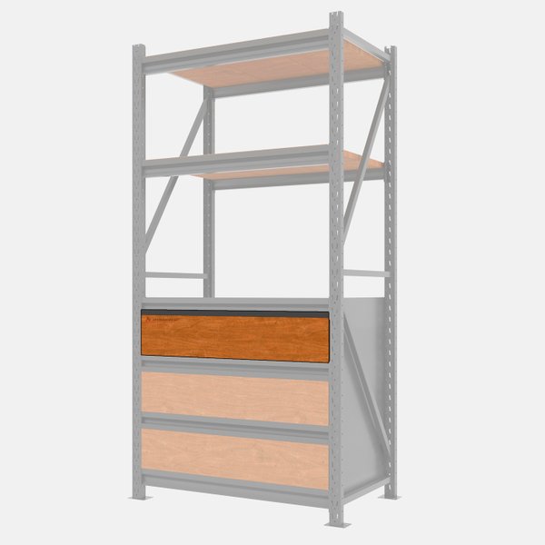 Выдвижной ящик для напольного стеллажа. Кронштейны для подвеса ящика необходимо приобретать отдельно.
